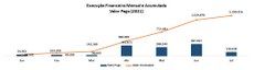 No gráfico temos o valor de R$ 1.290.316,28 (valor total pago até julho) abertos mensalmente (coluna azul) e de forma acumulada (linha vermelha). Ou seja , é possível concluir que em Julho pagamos o valor total de R$ 130.438,00 (coluna azul), sendo que até o mesmo mês pagamos o valor total acumulado de R$ 1.290.316,28 (linha vermelha acumulada).