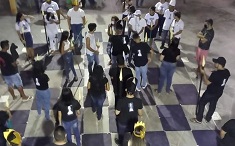 As peças do tabuleiro de xadrez eram os próprios alunos do Instituto