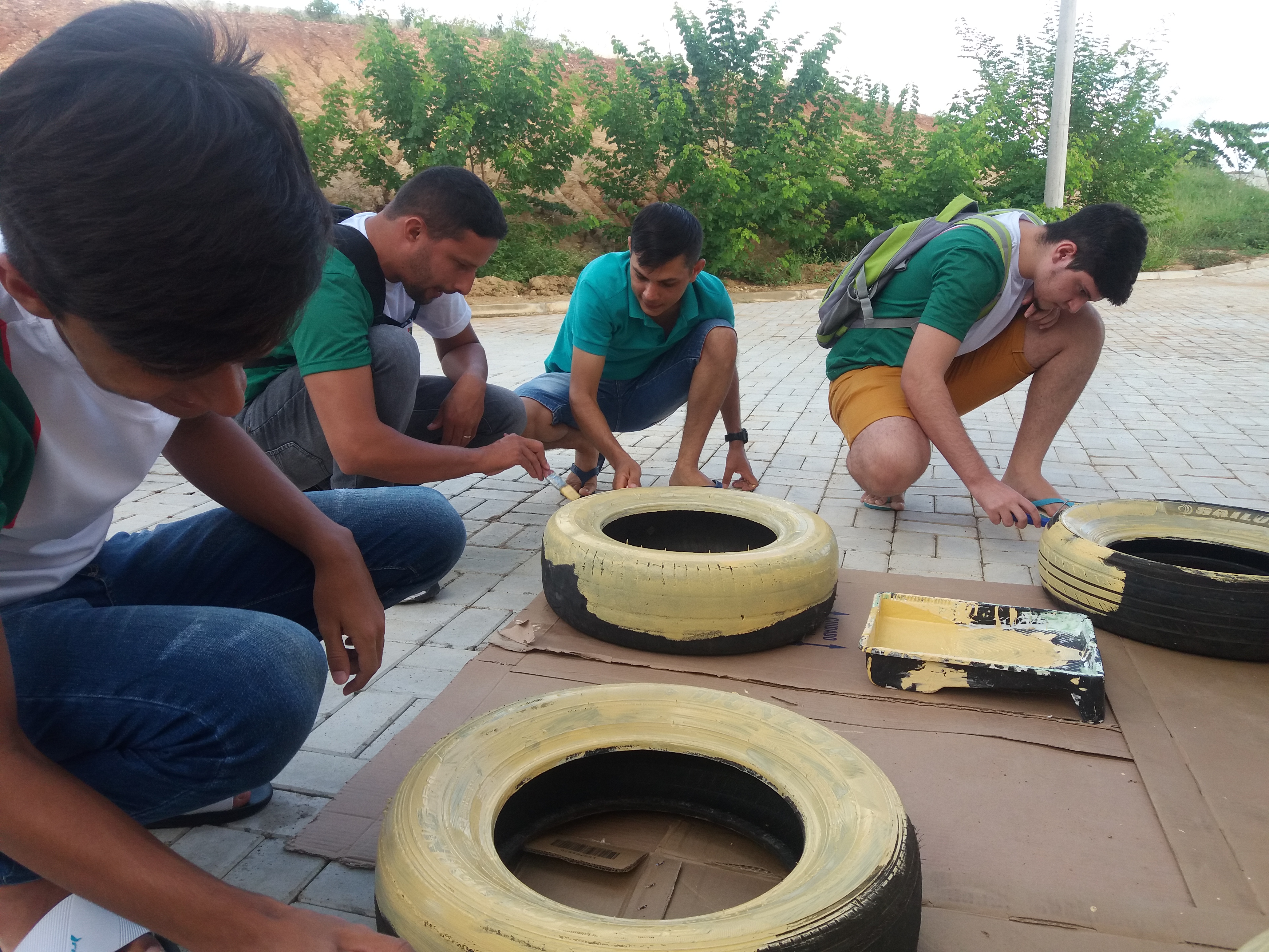 Alunos do IFCE participaram de uma atividade do Projeto de Sustentabilidade do campus Acopiara. Pneus foram pintados e serão reutilizados para plantar novas árvores no terreno, visando à contenção da erosão causada pelas chuvas, à melhoria da ambientação do campus, além de evitar o descarte desse material na natureza. Durante essa atividade, foram discutidas as questões ambientais relacionadas ao reuso de resíduos sólidos, contribuindo para a consciencialização ambiental dos estudantes.