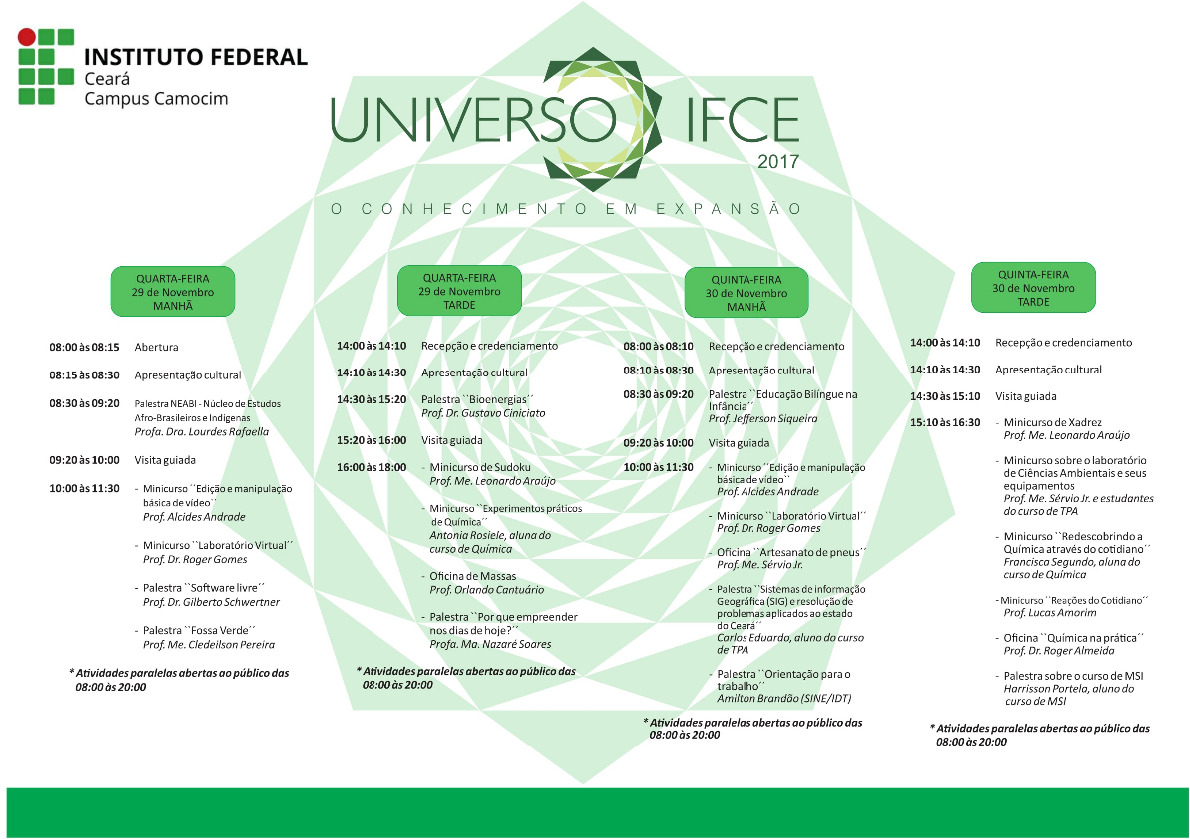 | 28/11/2017 | Programação Universo IFCE 2017 |