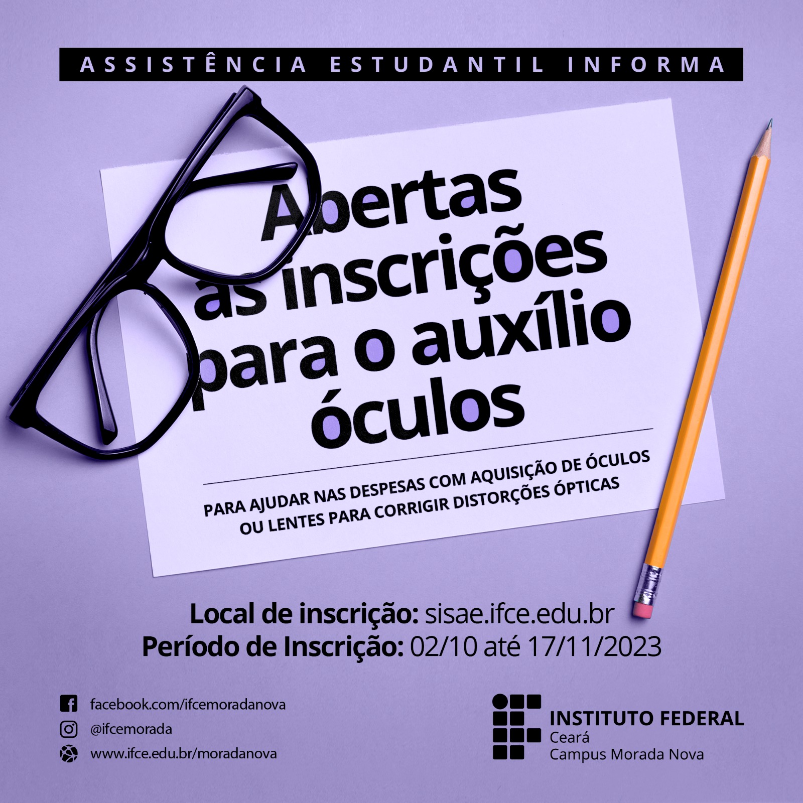 | 29/09/2023 | Abertas as inscrições para o auxílio óculos |