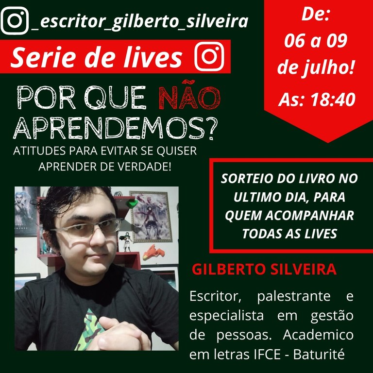 Os encontros acontecerão no perfil do instagram do aluno, durante dos dias 06 a 09 de julho, a partir das 18h:40min.