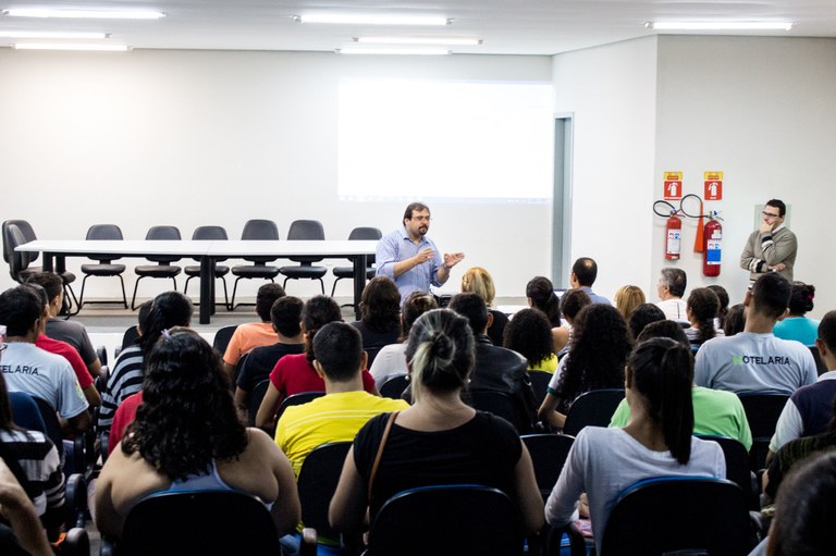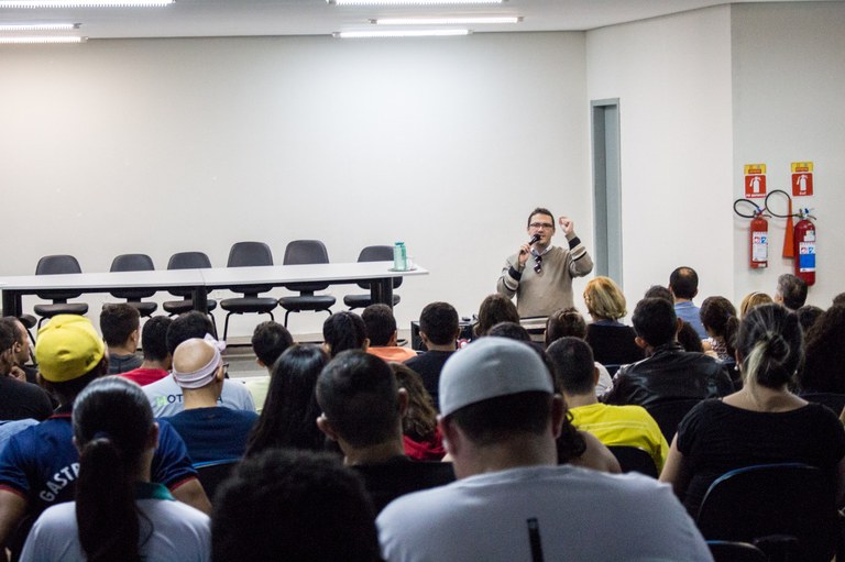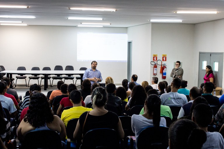 Durante o intervalo das aulas, os alunos receberam orientações sobre o trânsito