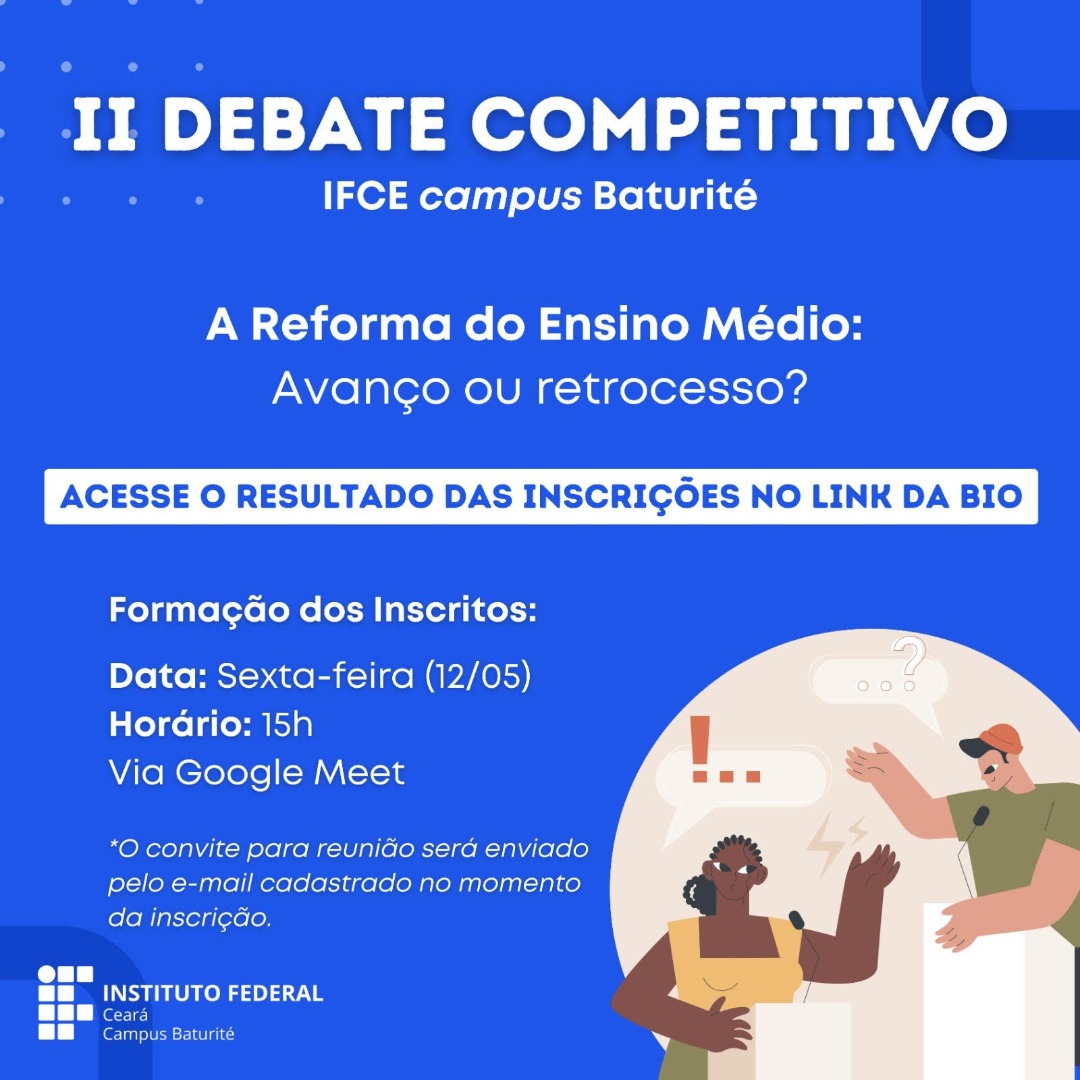 Divulgada a lista dos inscritos para o II Debate Competitivo do IFCE Campus Baturité