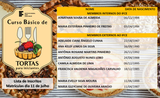 Divulgada a lista dos dez alunos que participarão do Curso Básico de Tortas para Iniciantes do IFCE - Campus Baturité. Os candidatos selecionados devem confirmar a matrícula presencialmente no campus no dia 11 de julho de 2019, pela manhã (8h30 às 11h30) ou tarde (13h30 às 16h30), para garantir sua vaga no curso. Os candidatos listados que não comparecerem para a matrícula, conforme edital, perderão sua vaga no curso e um próximo candidato será chamado.