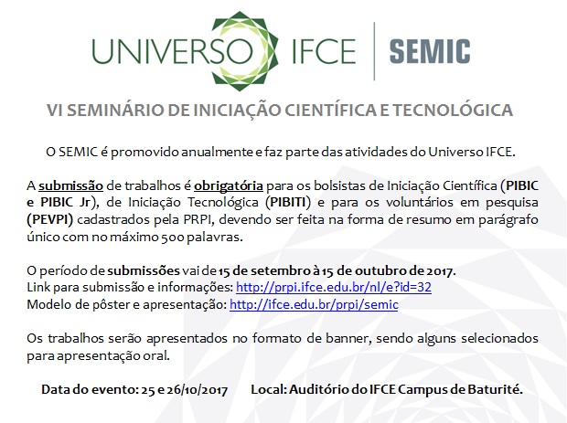 Próximo dia 15/09 inicia-se o prazo para submissão de trabalhos ao SEMIC 2017
