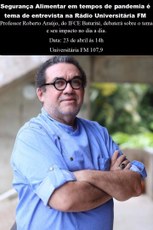 Nesse sentido, a edição desta quinta-feira (23) do programa de rádio IFCE no Ar, que é exibido na rádio universitária de Fortaleza, será veiculada uma entrevista com o gastrônomo e professor do campus Baturité, Roberto Araújo. Na entrevista, o docente tratará, dentre outros assuntos, da Segurança Alimentar e Nutricional em tempos de pandemia.