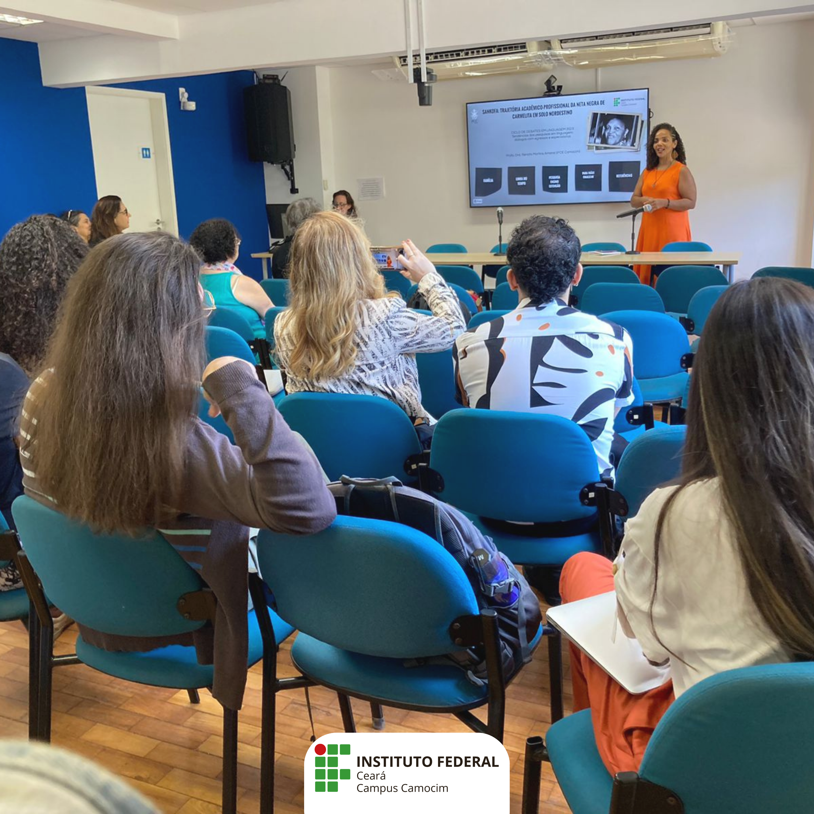 Durante o evento, a Profa. Renata Amaral ministrou uma palestra abordando sua trajetória acadêmica e profissional e as reconfigurações de seus interesses de pesquisa no âmbito da Linguística Aplicada e da Sociolinguística Interacional, a partir das questões de gênero e raça. Para Renata, "a participação no evento proporcionou a oportunidade de estabelecer parcerias entre o curso de Letras da PUC-Rio e o curso de Letras do IFCE campus Camocim".