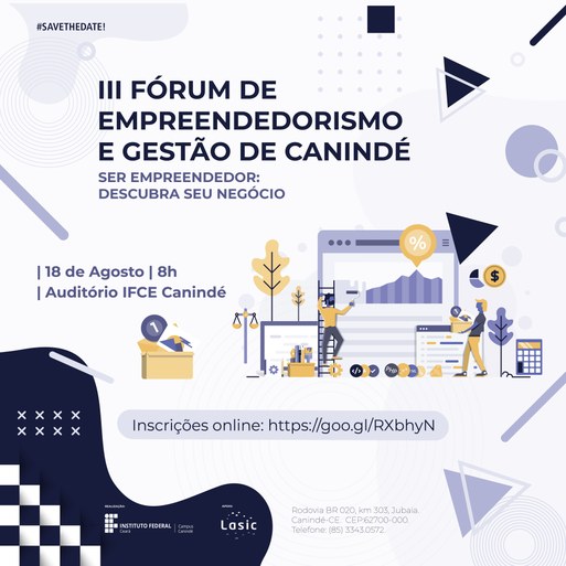 O Fórum de Empreendedorismo e Gestão do campus de Canindé do Instituto Federal do Ceará (IFCE) chega à sua terceira edição neste sábado (18). O tema que norteia o debate de amanhã é “Ser empreendedor: descubra seu negócio”.