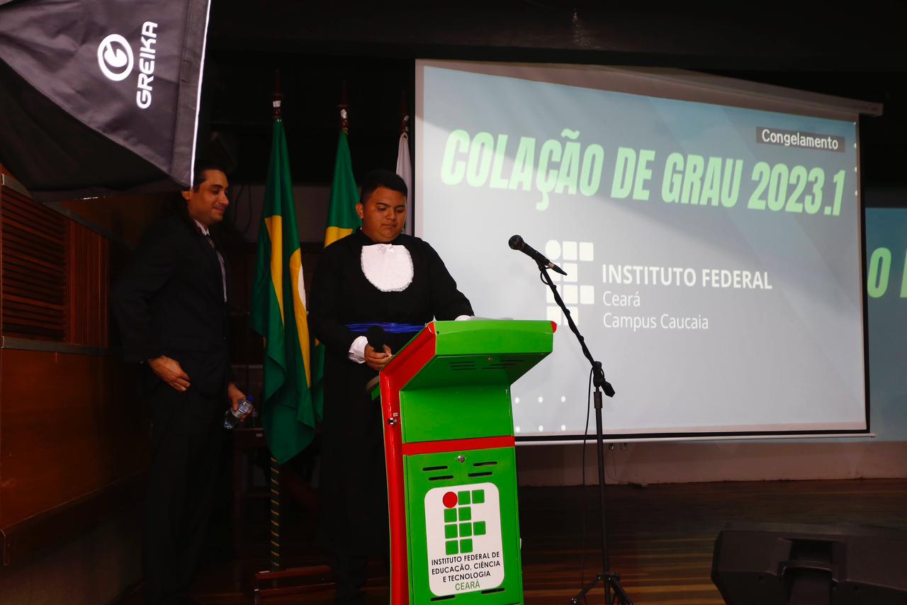 Concludente Carlos Matheus do Monte Rodrigues, orador dos cursos técnicos. Foto: Francisco da Costa Rodrigues.