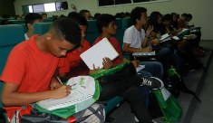 Alunos receberam mochila entre outros materiais no primeiro dia de aula (Foto: Pedro Rildson)