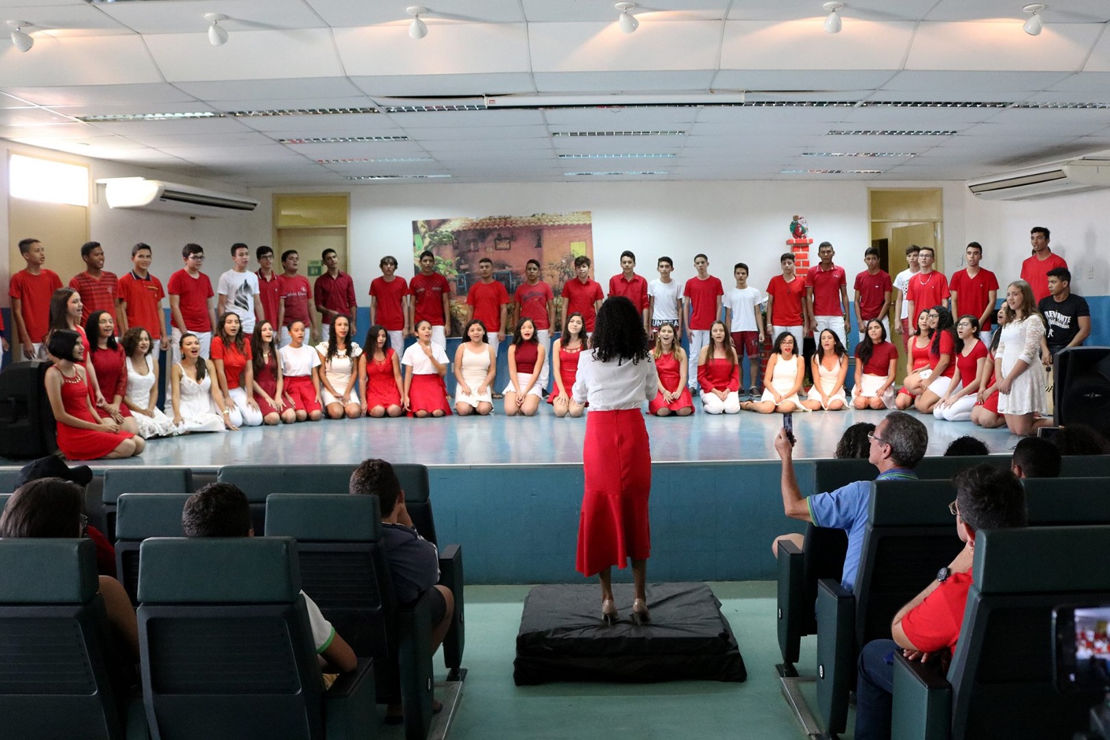 Coral de alunos cantou no auditório do campus do Cedro ( Crédito: Vitor Meireles).