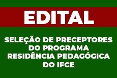 A direção-geral publicou nesta quinta-feira, 22/9, edital seletivo de 3 professores preceptores do Programa de Residência Pedagógica (PRP). Em Cedro, ofertam-se 1 vaga para atuação no campus e 1 para atuação nas escolas municipais Francisca de Jesus Cavalcanti,Antonieta Jucá Marques e Gabriel Diniz. Em Várzea Alegre, a vaga é para a Escola Estadual de Ensino Médio em Tempo Integral Professora Maria Afonsina Diniz Macêdo. A íntegra do edital e dos anexos está no menu editais do site do campus do Cedro.