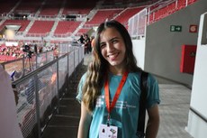 Maria Helena, aluna do S4 integrado em Informática do campus Campo Grande do Instituto Federal do Mato Grosso do Sul, disse que as expectativas são altas para conquistar medalha no vôlei de praia. Ela teve a honra de segurar a placa da delegação do IFMS e destacou a alegria de representar o estado. “Foi de última hora. Achei legal estarmos lá representando”, contou.
