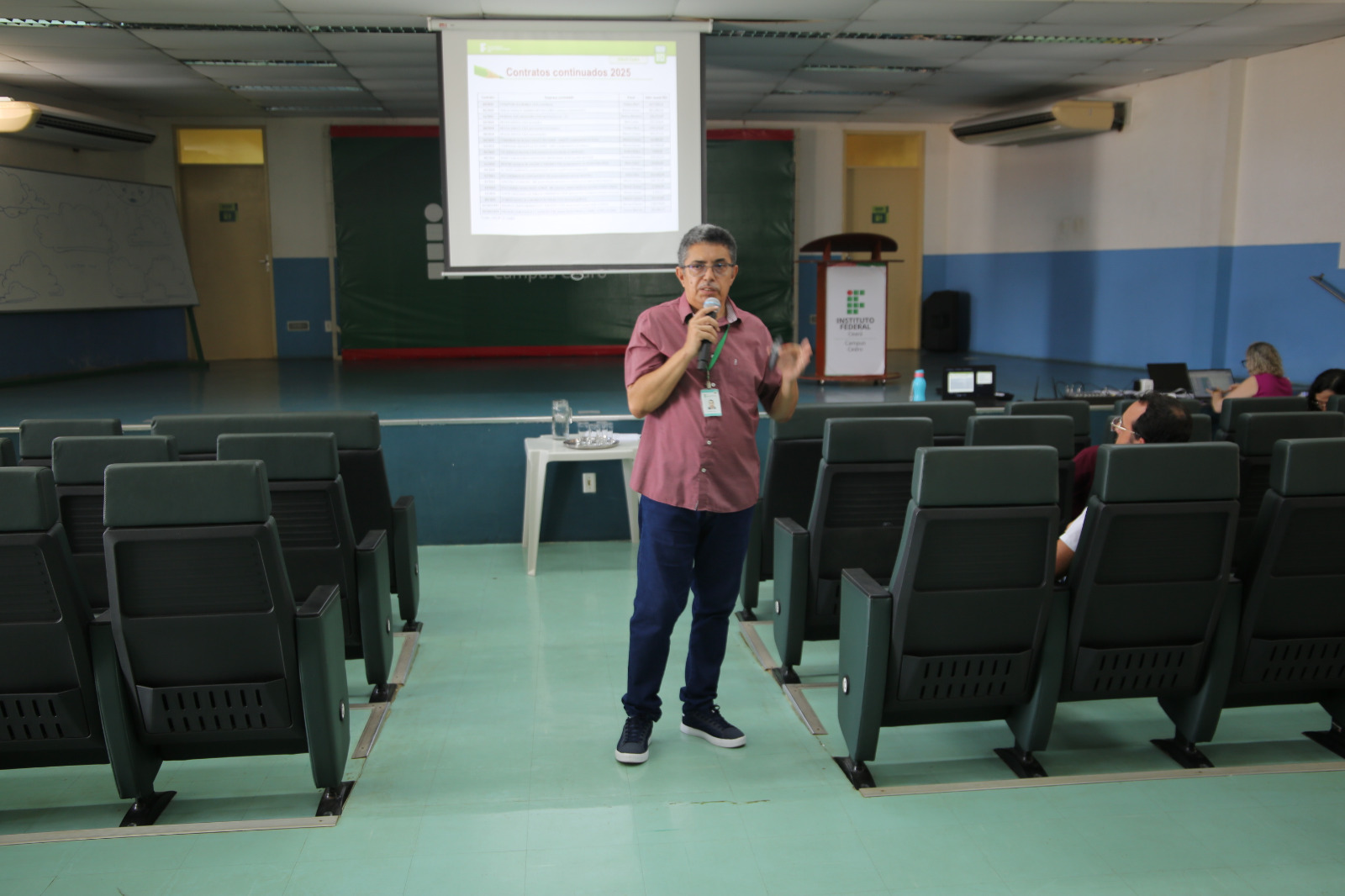 Diretor de administração e planejamento, Glauber Moura, apresenta informações sobre a situação orçamentária do campus