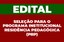 A direção-geral do campus do Cedro publicou nesta sexta-feira,23/9, o edital do processo seletivo de alunos residentes bolsistas e voluntários para atuarem no Programa Institucional de Bolsa de Residência Pedagógica (PRP) do IFCE. Os selecionados irão atuar nas escolas-campo, onde vão ser acompanhados por um professor da educação básica, denominado preceptor. A íntegra e o anexo do edital estão no menu editais do site do campus do Cedro.