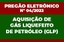 O campus de Juazeiro do Norte vai realizar pregão eletrônico no dia 11/1, a partir das 9h, no Portal de Compras do Governo Federal para aquisição de Gás Liquefeito de Petróleo - GLP de 45 kg para abastecer os restaurantes acadêmicos da Central de Compras Cariri do IFCE,campi Cedro e Juazeiro do Norte, conforme condições, quantidades e exigências estabelecidas no edital e nos anexos, disponíveis no menu editais do site do campus do Cedro .