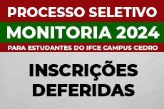Saiu o resultado das inscrições deferidas do edital de monitoria do IFCE Cedro.