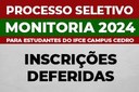 Divulgadas inscrições deferidas para o edital de monitoria em Cedro