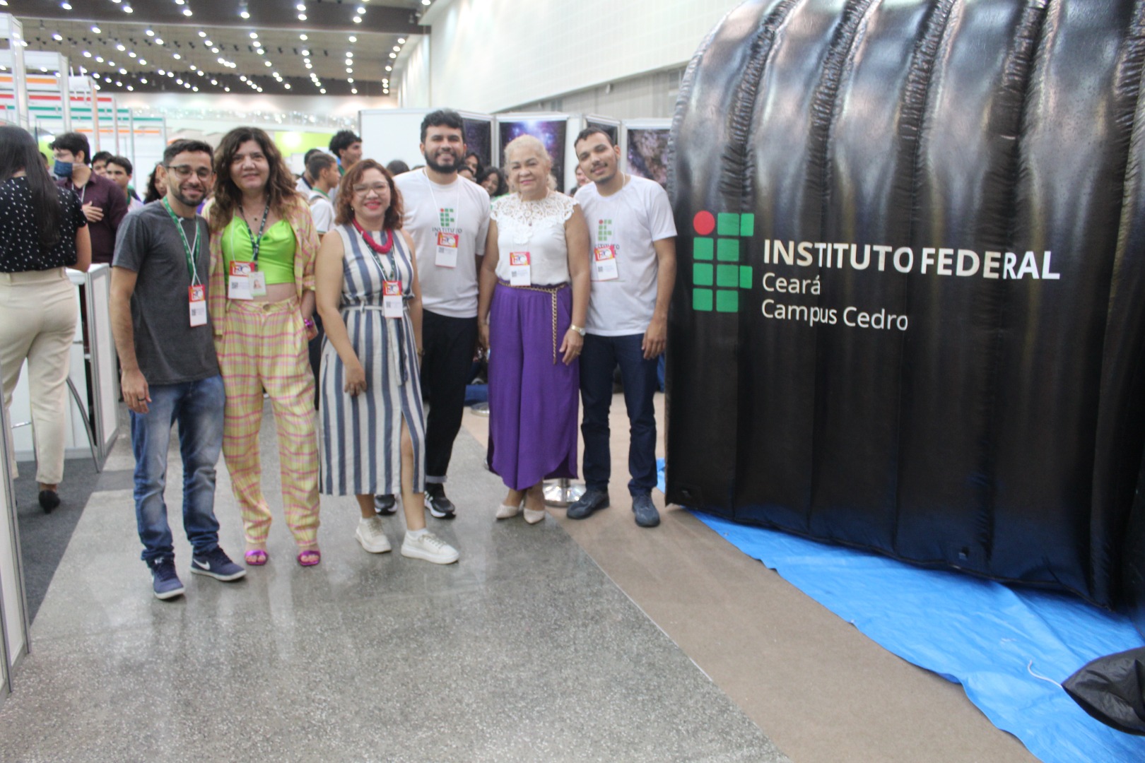A pró-reitora de Pesquisa, Pós-graduação e Inovação, Joelia Marques (terceira da esquerda para a direita), visita Planetário do campus do Cedro na Feira do Conhecimento