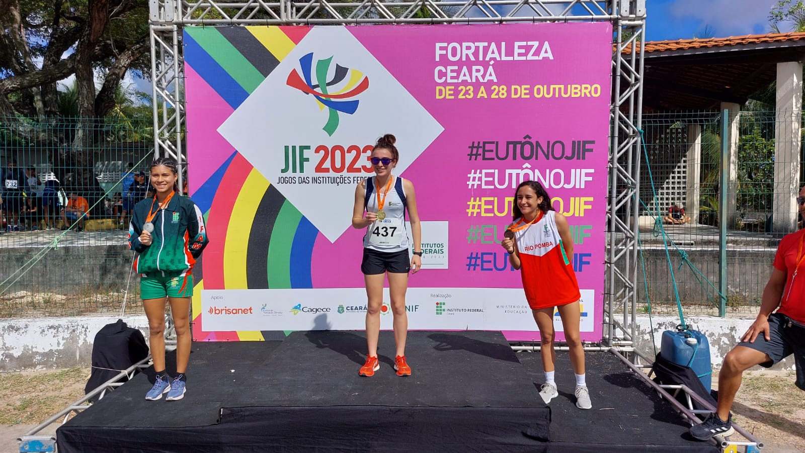 Nos 800m rasos feminino,o ouro para Taianara Suzana Berner Huff do IF Catarinense. A prata om Estefany Santos de Lima do IFAM e o bronze com Monique Lima Carias do IF Sudeste de Minas. As primeiras medalhas da mulheres nos JIF 2023.