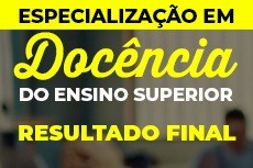Está disponível o resultado final da seleção para novos alunos da Especialização em Docência do Ensino Superior do IFCE Cedro. Após a divulgação do resultado final, vai ser realizada a aferição de heteroidentificação nesta quarta-feir,8/01.