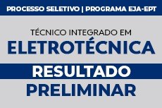 Saiu resultado preliminar do processo seletivo para o curso de Técnico Integrado em Eletrotécnica (EJA). Nos dias 18 e 19/1 vai ser realizado o processo de heteroidentificação. Em 19/1, o resultado final.