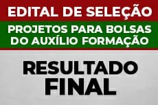 A Comissão de Seleção de Projetos para o auxílio formação publicou nesta segunda-feira,4/9,o resultado final do edital de Seleção de Projetos para auxílio formação do campus do Cedro.A validade do edital é de 12 meses,considerando seu início em setembro de 2023 e o fim em agosto de 2024.