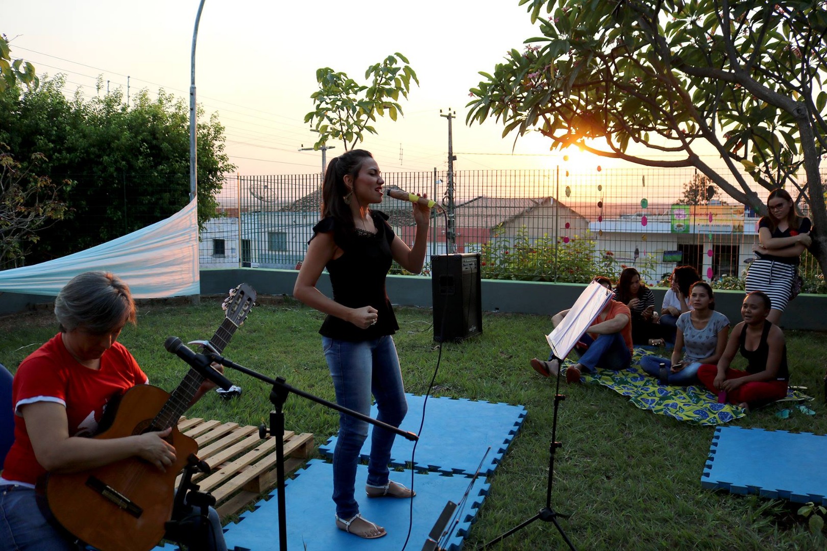 Professora Ana Paula Nogueira no Sarau Pôr do Sol. Crédito: Vitor Meireles.