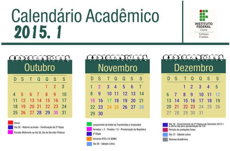 Definidas novas datas do calendário acadêmico 2015.1