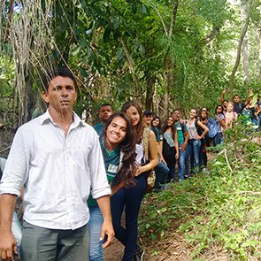 Alunos participam de trilha ecológica pelo campus