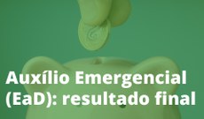 Foi divulgado nesta segunda-feira, 27 de setembro, o resultado final do processo seletivo para a concessão do auxílio emergencial 2021 (EaD). Aos(às) discentes selecionados(as) serão pagas quatro parcelas, no valor de R$ 300,00 (trezentos reais) cada, em referência ao período de agosto a novembro de 2021.