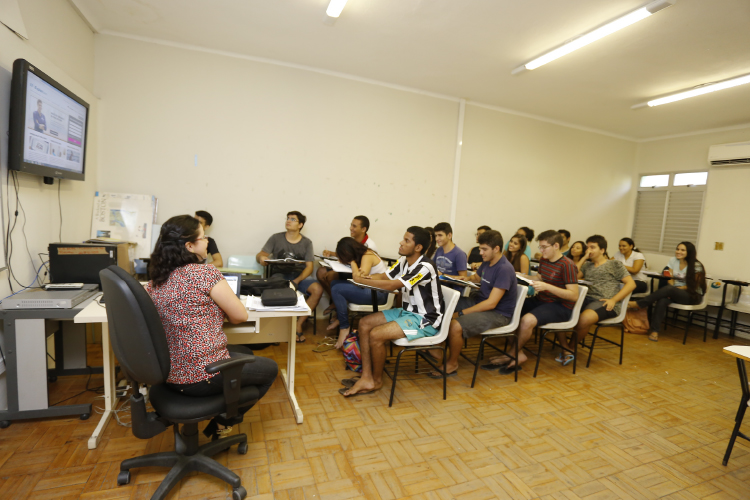 Professora e estudantes em sala de aula