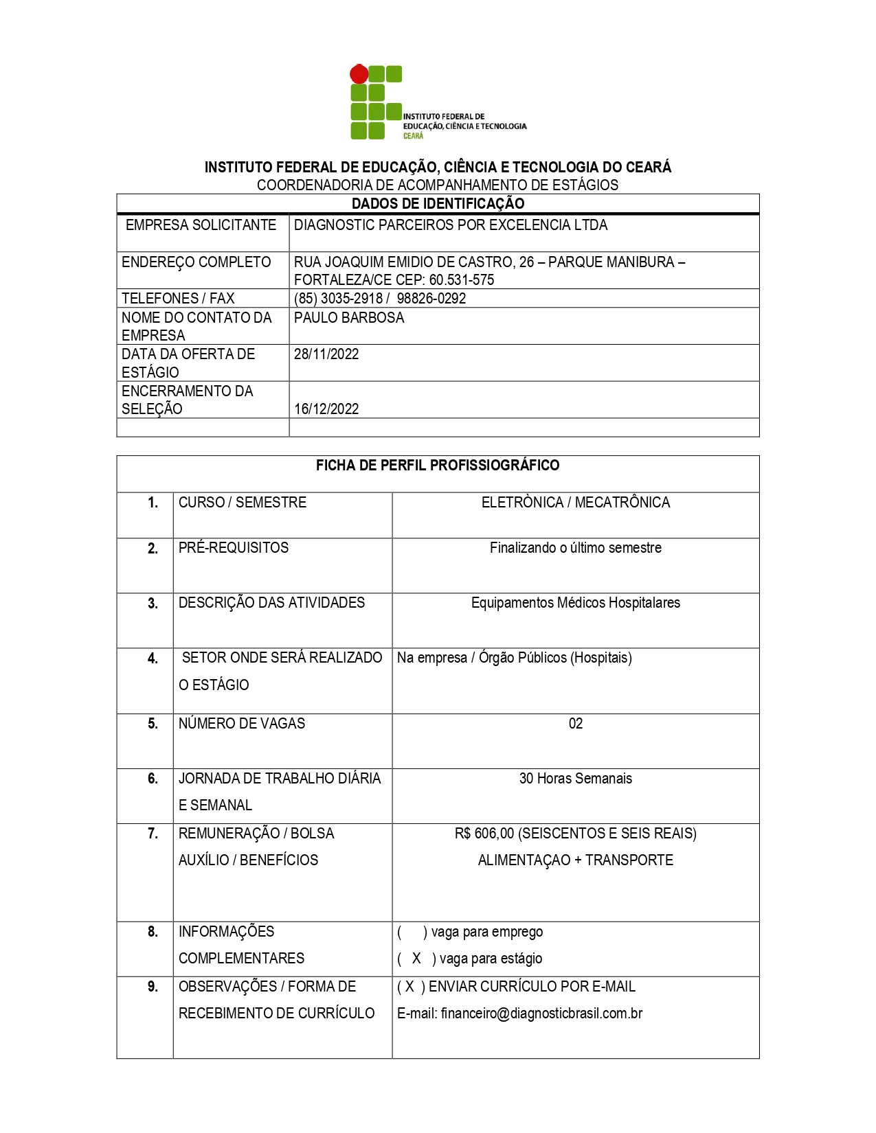 Vagas de estágio