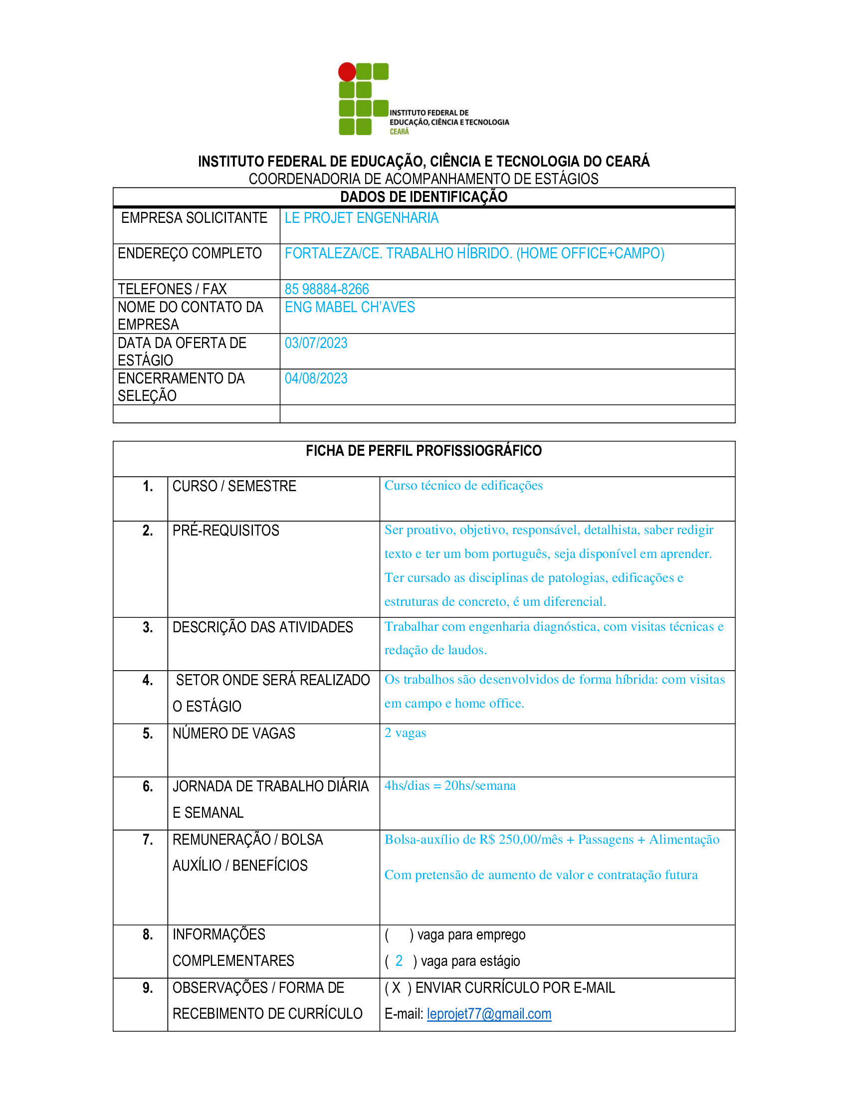 Vagas de estágio