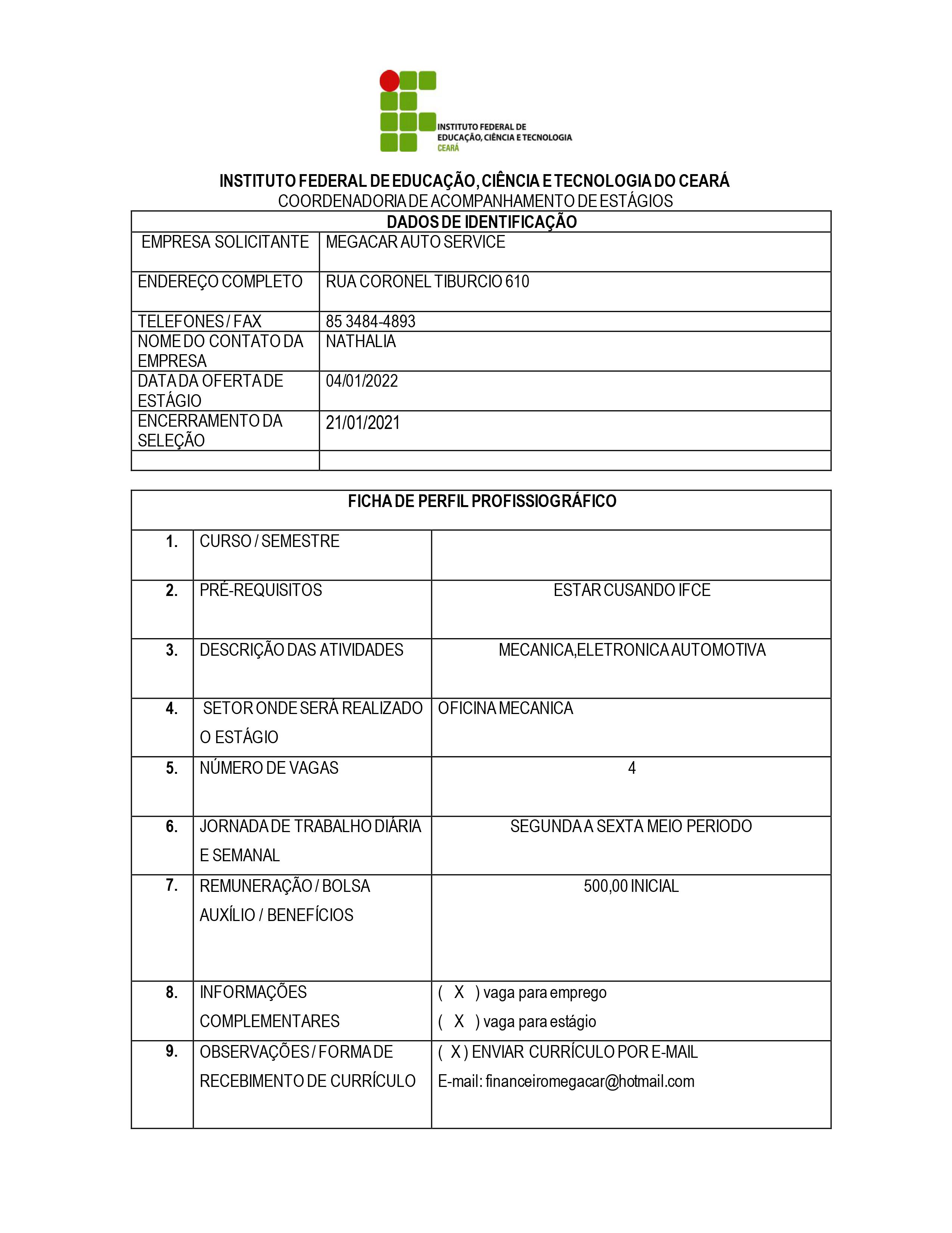 Vagas de estágio