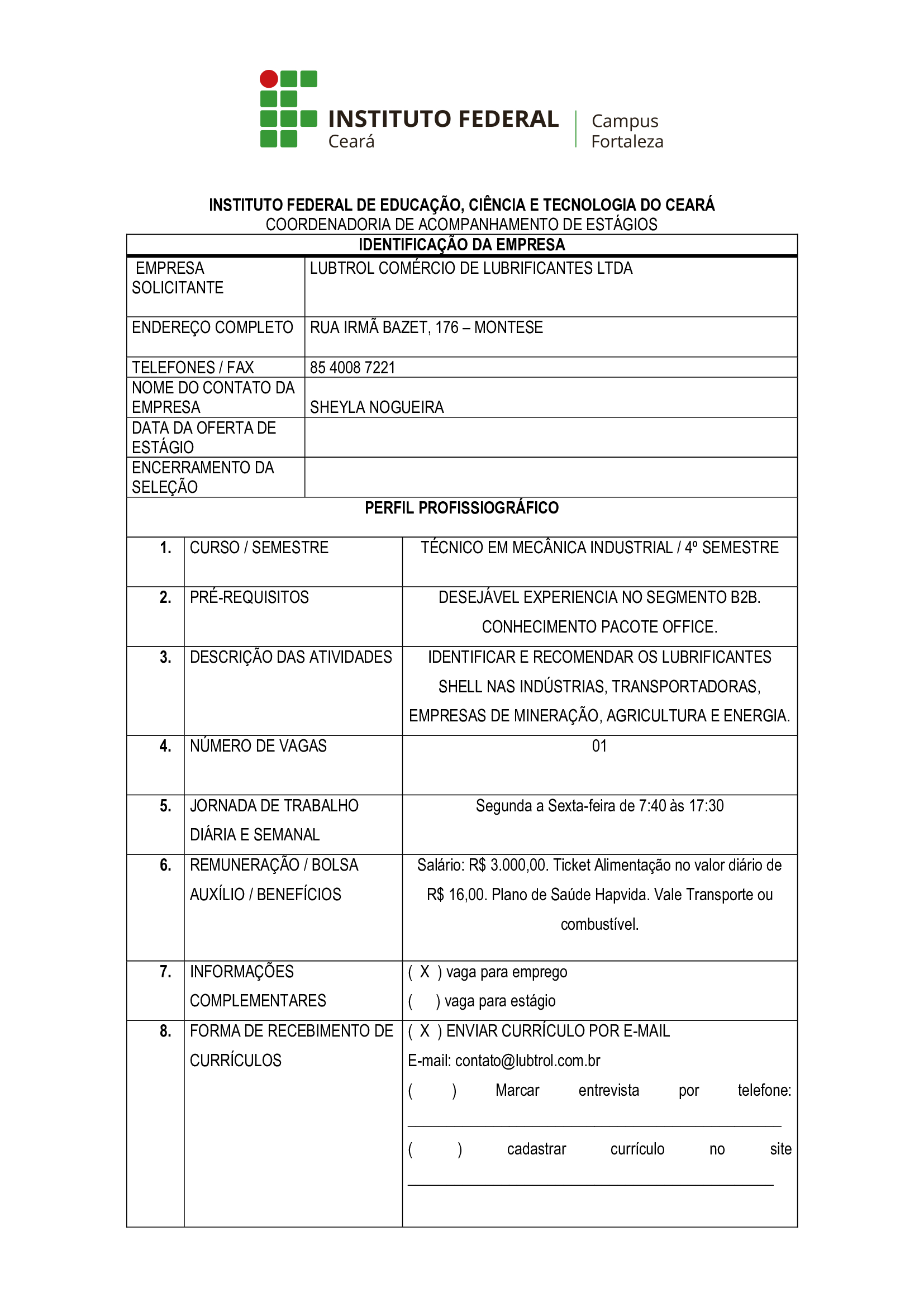 Vagas de estágio