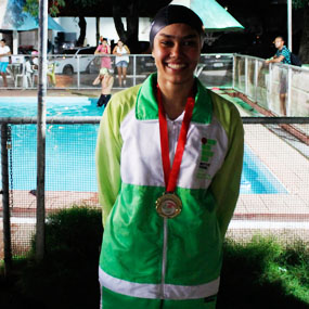 Imagem: A aluna Raine Alves, vencedora da categoria 200m nado livre. (foto: Edson Costa)