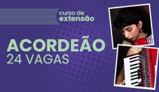 De 15 a 19 de fevereiro, estarão abertas as inscrições gratuitas para o Processo Seletivo Simplificado do Curso de Extensão de Acordeão. Ao todo serão ofertadas 24 vagas, sendo 12 para a turma A e 12 para a turma B.