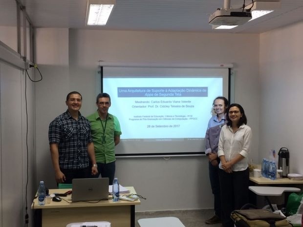 O PPGCC realizou a sua 19ª defesa de mestrado na última quinta-feira, dia 28/09/2017, às 14h na Sala 1 do PPGCC-IFCE. O aluno Carlos Eduardo Viana Valente obteve seu título de mestre em Ciência da Computação com o trabalho intitulado “Uma Arquitetura de Suporte à Adaptação Dinâmica de Apps de Segunda Tela”. O trabalho foi orientado pelo Prof. Dr. Cidcley Teixeira de Souza (PPGCC-IFCE), e completaram a banca examinadora a Profa. Dra. Carina Teixeira de Oliveira (PPGCC-IFCE) e o Prof. Dr. Henrique Sérgio Lima Pequeno (UFC).