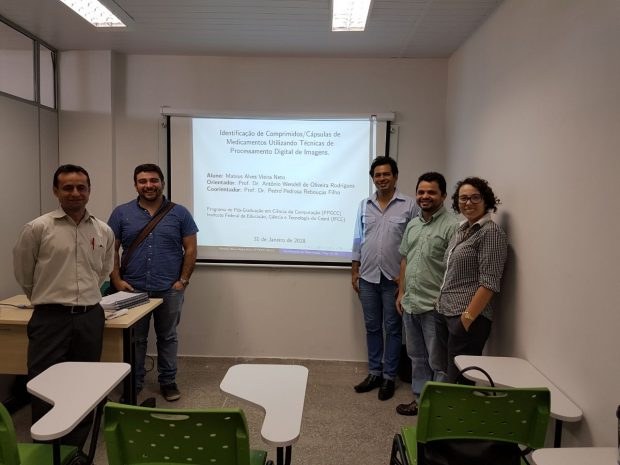 O PPGCC realizou a sua 25a. defesa de mestrado no último dia 31/01/2018. O aluno Mateus Alves Vieira Neto obteve seu título de mestre em Ciência da Computação com o trabalho intitulado “Identificação de Comprimidos/Cápsulas de Medicamentos Utilizando Técnicas de Processamento Digital de Imagens”. O trabalho foi orientado pelo Prof. Dr. Antonio Wendell de Oliveira Rodrigues (PPGCC-IFCE), co-orientado pelo Prof. Dr. Pedro Pedrosa Rebouças Filho e completaram a banca examinadora a Profa. Dra. Ananda Lima Freire (PPGCC-IFCE) e o Prof. Dr. Antônio Carlos da Silva Barros(PPGIA/UNIFOR) .