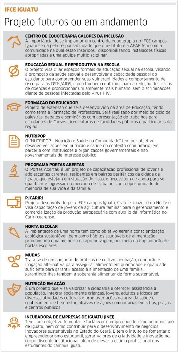 Resumo de projetos desenvolvidos pelo Campus Iguatu