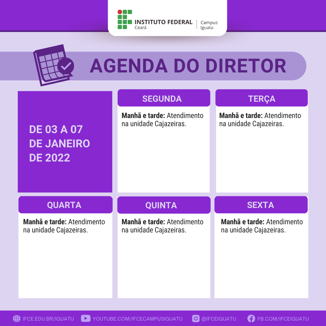 Agenda do diretor - 3 a 7 de janeiro de 2022