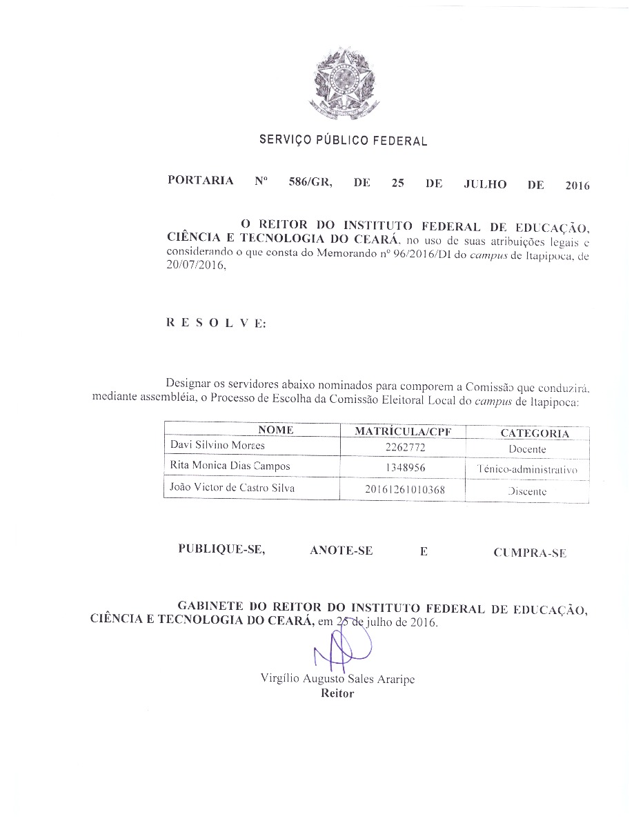 Comissão Eleitoral Local - campus de Juazeiro do Norte