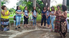 "Preta, me conta tua história de amor" foi o título da roda de conversa, realizada ontem (25), com a integrante do grupo Pretas Simoa, Karla Alves, em frente ao Auditório Kariris. Nessa ocasião, Karla falou que o grupo de mulheres negras da região do Cariri existe há quatro anos e desenvolve formações abertas ao público, geralmente em praças e outros espaços públicos. Ela destacou a ausência da mulher negra nos espaços de poder e convidou os participantes a ouvirem sobre personagens que fizeram a diferença , contribuíram para as transformações sociais e foram invisibilizados pela história oficial.
