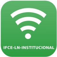 Traços brancos curvados um acima do outro, representando a propagação do sinal de rede sem fio. Cada traço vai ficando maior que o anterior. Abaixo da figura está escrito IFCE-LN-INSTITUCIONAL