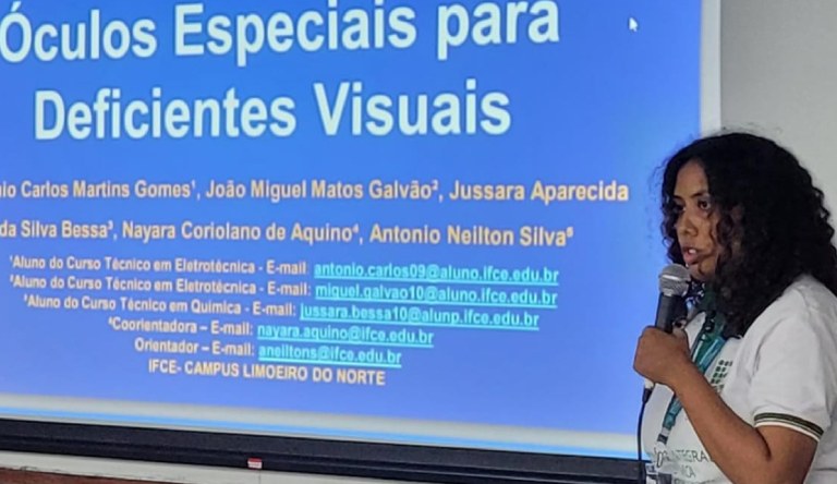 Jussara Bessa levou a pesquisa “Protótipo de óculos especiais para deficientes visuais”