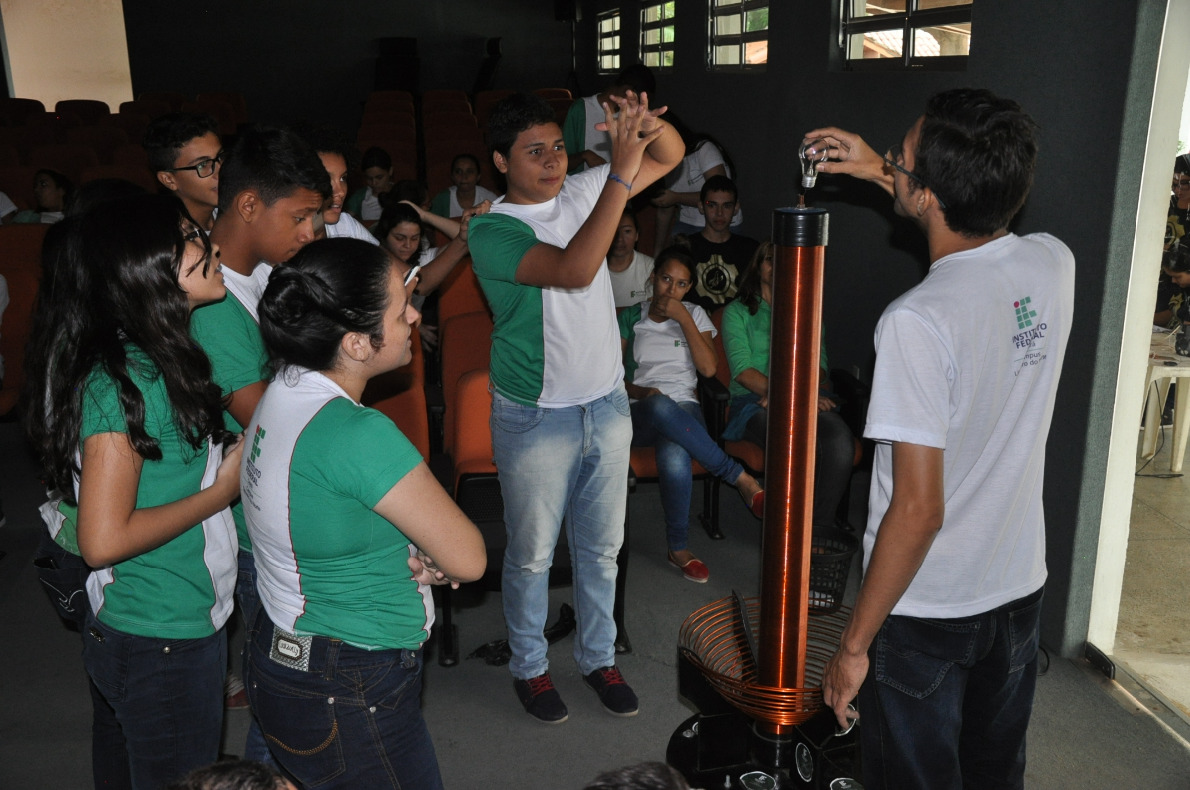 Exposição de projetos científicos, bobina de Tesla estática, com fins didáticos