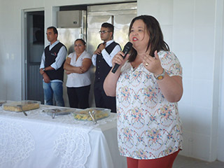 Professora Germana Marinho, diretora de ensino, fala aos servidores