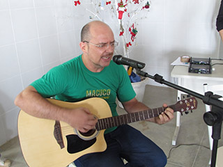 Professor Sandro Jucá ao violão na confraternização dos alunos